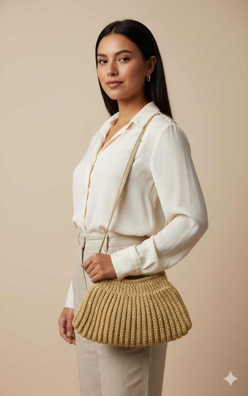 La suavidad de su tono crema y los detalles artesanales en coral evocan una elegancia natural y refinada. Coral de Luna es el bolso ideal para quienes valoran la calma, el arte y la belleza discreta.