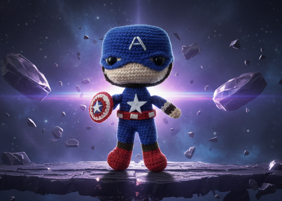 El espíritu del Primer Vengador en una versión nunca antes vista. Una figura artesanal hecha a crochet que mezcla épica, ternura y exclusividad.